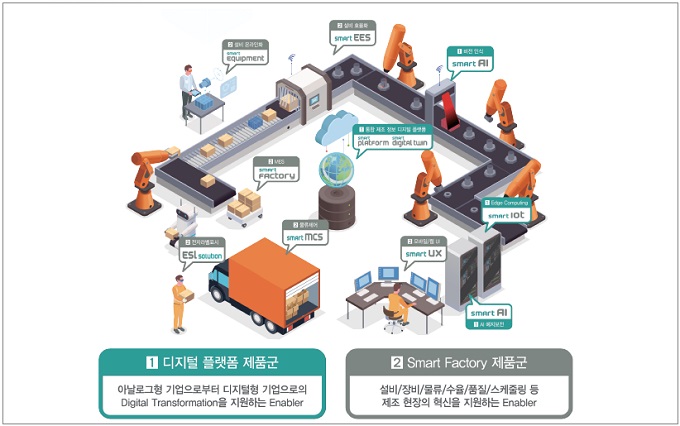 이를 바탕으로 전기·전자, 반도체, 식품, 제철, 항공우주 등 제조 업종의 생산 활동 전반에 대한 정보 제공과 의사결정을 지원하는 MES 중심의 스마트 팩토리 솔루션을 제공하고 있으며, 스마트 팩토리 컨설팅부터 운영 서비스까지 포괄적인 사업을 진행하고 있다.