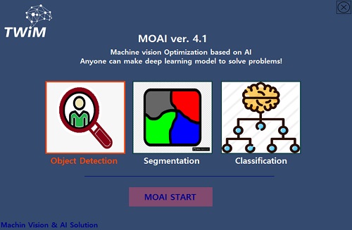 제조 기업에서는 다양한 제품들을 생산하는 과정에서 양품인지 불량품인지 검사하는 과정을 거치게 된다. 최근에는 사람이 일일이 육안으로 검사하는 대신에 머신비전 검사를 통해 많은 기업들의 생산성이 높아졌지만, 일반 비전검사기의 경우 작업 환경이 바뀌고 검사하는 기준 수치들이 바뀔 때마다 장비를 새로 세팅해야 하는 번거로움이 있으며 다양한 불량 유형이나 비정형 형태의 불량 유형에서 검사의 정확도가 떨어지는 문제점이 발생한다. 트윔(TWiM)의 딥러닝 기반의 비전검사 소프트웨어인 ‘MOAI’는 이러한 문제를 해결할 수 있는 인공지능 비전검사용 소프트웨어이다(그림 1).