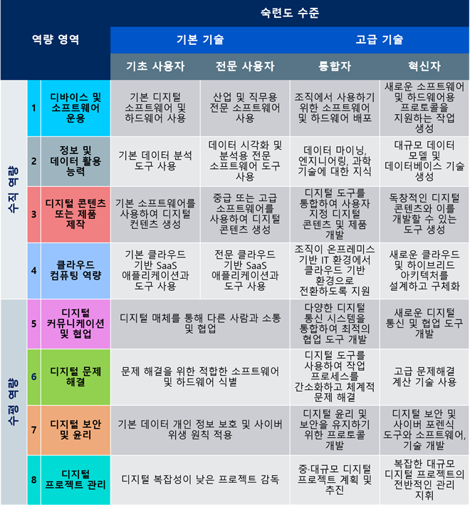 ▲8개의 디지털 역량 영역