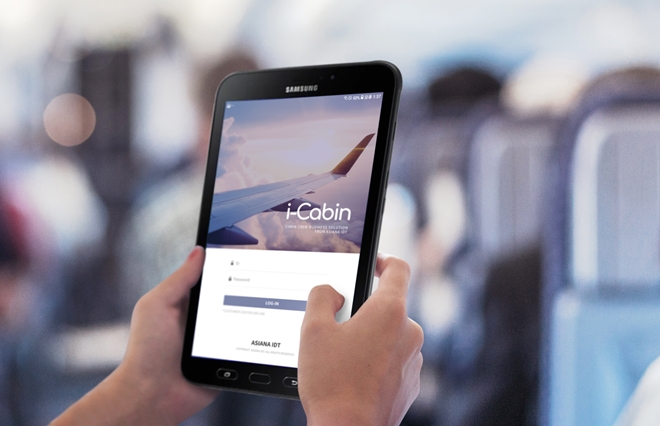 ‘아이캐빈’은 태블릿PC로 업무 관련 정보 조회 및 보고서 제출 등 업무 처리가 가능한 솔루션으로, 승무원들의 업무 효율성을 극대화하기 위해 2019년 7월 아시아나항공에서 국내 항공분야 최초로 도입한 스마트워크 플랫폼이다.