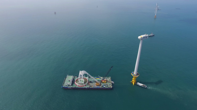 ▲서남해 해상풍력 1단계 실증사업(2018년)에 대한전선의 케이블이 시공되고 있다.
