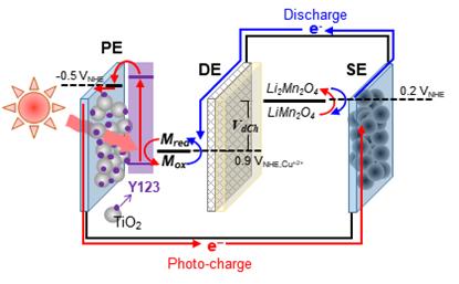 개발된 광충전 이차전지 시스템은 염료감응 태양전지(발전기)와 발전으로 얻은 전력을 저장하는 배터리가 합쳐진 시스템이다. 리튬 이온이 배터리 전극에 단위 시간당 더 많이 저장될수록 충전 효율이 높다. 연구진은 이 같은 시스템을 선행연구를 통해 개발하고, 11.5%의 높은 에너지 변환·저장 효율을 기록한 바 있다.