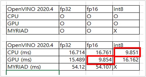 표 1. OpenVino 500x500 Mercury Interference Time 비교표