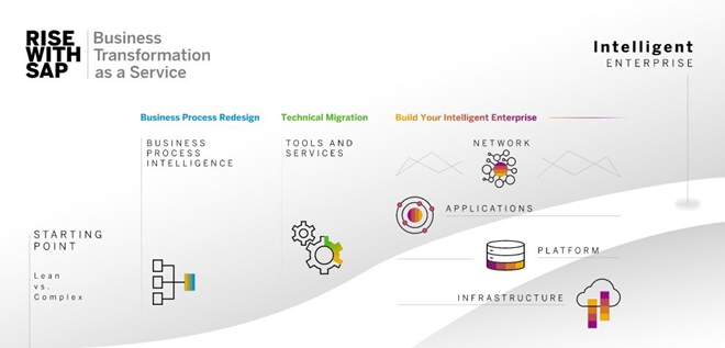 현재 SAP는 디지털 전환의 모든 단계에서 고객이 지능적인 기술로 프로세스를 재설계, 더 나은 비즈니스 결과를 도출할 수 있는 방법을 제공하는 라이즈 위드 SAP(RISE with SAP)를 제공하고 있다.