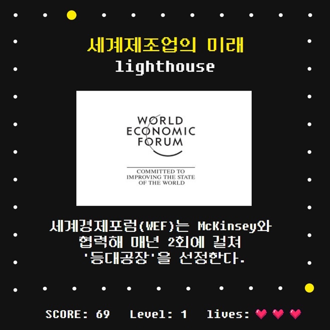 세계경제포럼과 McKinsey가 매년 2회에 걸쳐 등대공장을 발표한다.