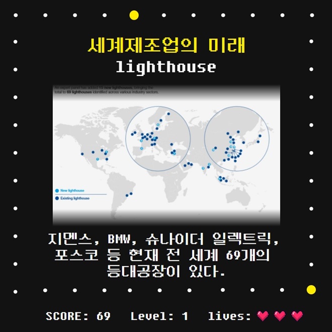 선정된 등대공장은 산업 혁명 기술, 자동화, 고급 및 예측 분석, 가상·증강현실, 산업 인터넷 사물 등을 통해 기업이 디지털 연결을 할 때, 더 효율적인 결과를 얻을 수 있다는 것을 증명한 기업들이다.