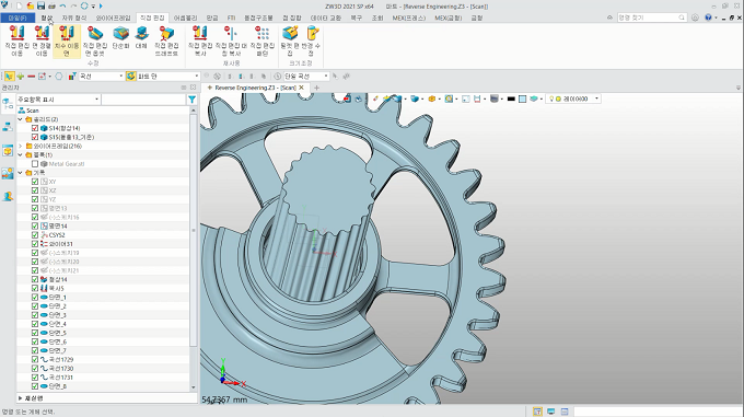 그림. 지더블유캐드코리아의 ZW3D 기어 역설계 화면