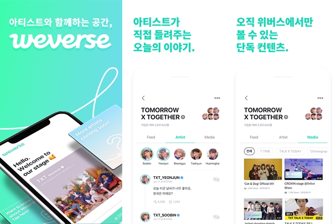 HYBE(하이브, 전 빅히트)는 글로벌 팬 커뮤니티 플랫폼인 위버스(Weverse)와 팬 커머스 앱인 위버스샵을 운영하고 있다. 위버스는 K-POP 팬들을 위한 소셜 네트워크 서비스로, 팬들은 위버스 안에서 아티스트, 글로벌 팬들과 소통하고 콘텐츠를 소비한다.