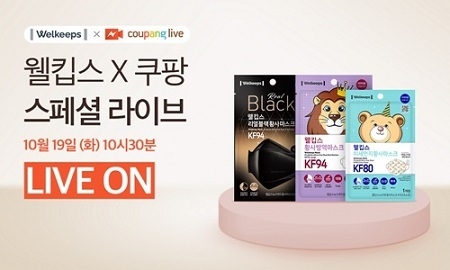웰킵스 관계자에 따르면 이번 프로모션은 화장품과 유아동 용품을 위주로 진행하는 쿠팡 라이브에서 진행되는데, 다양한 마스크를 최소 20%부터 최대 32%까지 할인된 가격으로 제공할 계획이다.
