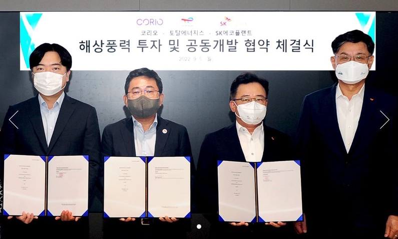 SK에코플랜트는 지난 5일 그린인베스트먼트그룹(GIG)의 글로벌 해상풍력 전문 개발회사인 코리오 제너레이션(Corio Generation, 이하 코리오)과 글로벌 종합 에너지 기업 토탈에너지스(TotalEnergies)와 함께 국내 해상풍력 발전사업의 공동개발 협약을 체결했다고 밝혔다.