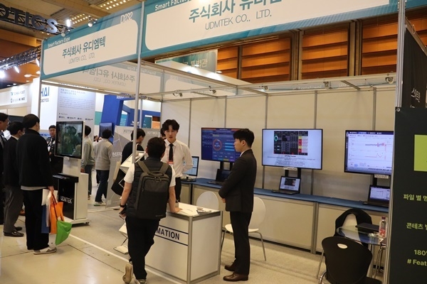 유디엠텍이 ‘스마트공장·자동화산업전 2023(Smart Factory+Automation World 2023, 이하 AW 2023)’에 참가해 유디엠텍이 자체개발한 기계어 처리기술 공정 운영 소프트웨어를 소개해 참관객에게 솔루션을 설명했다.
