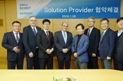 사진. 이 협약식에는 한국 지멘스 디지털팩토리 / 공정산업 및 드라이브 사업본부의 귄터 클롭쉬 대표와 포스코 ICT의 최두환 사장 등이 참석했다. <출처: 한국지멘스> 상호 협력 통해 국내외 엔지니어링 사업 추진 글로벌 전기전자 기업, 지멘스의 한국법인 한국지멘스(대표이사·회장 김종갑)는 지난 1월 26일 포스코 ICT와 솔루션 파트너 협약을 체결했다. 이번 협약을 통해 지멘스는 포스코ICT의 엔지니어링 역량 강화와 글로벌 경쟁력 향상에 적극 협력할 계획이다. 지멘스는 소프트웨어에서 하드웨어에 이르는 광범위한 제품 포트폴리오를 바탕으로 공장 및 공정 자동화 컨트롤러, 범용 모션 제어기, 대형 드라이브 등의 제품을 사용한 설계, 설치, 시운전, 유지보수에 이르는 전 과정을 수행하도록 돕고 기술을 지원해 고객에게 더욱 신속하고 효율적인 서비스를 제공할 예정이다. 포스코 ICT는 이번 협약 및 기술 교류를 통해 글로벌 선진 기술과 노하우를 익히고 스마트 공장 구현 및 신 산업분야 진출 등의 한 단계 높은 도약을 기대하고 있다. 앞으로 포스코 ICT는 지멘스와 함께 포스코를 비롯해 포스코 에너지, 포스코 건설 등의 패밀리사는 물론, 중국 제